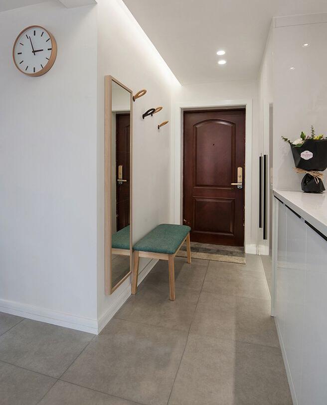 入户的位置做了穿衣镜的处理,还有鞋柜的设置,非常的适宜